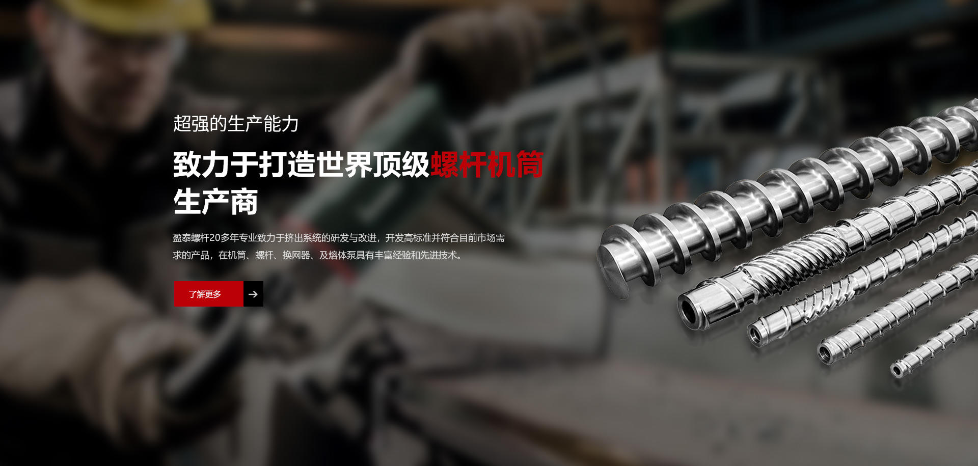 盈泰(INTAI)是一家領(lǐng)先的高品質(zhì)螺桿機(jī)筒生產(chǎn)商,憑著自身20多年的行業(yè)經(jīng)驗(yàn),一直以穩(wěn)定的步伐逐步成長(zhǎng),致力于打造世界頂級(jí)的螺桿機(jī)筒優(yōu)質(zhì)供應(yīng)商。